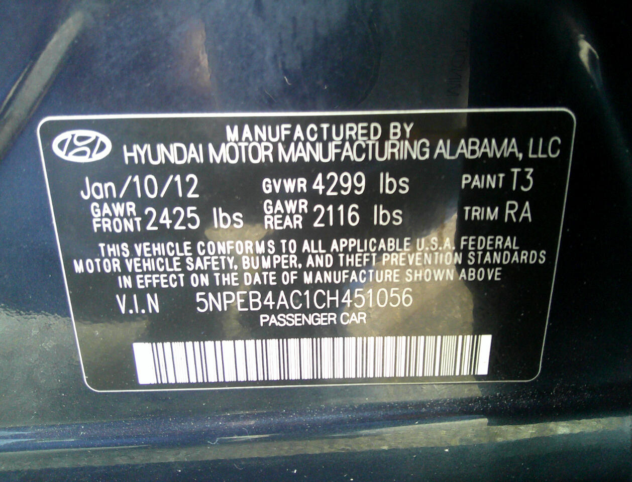 Vehicle Inquiry for 2012 Hyundai Sonata 4dr Sdn 2.4L Auto GLS