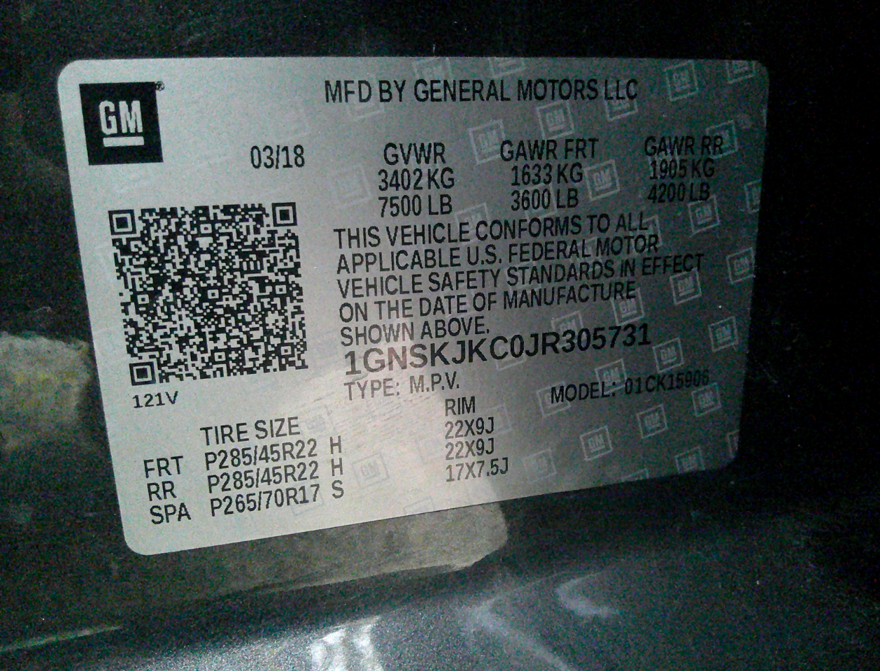 Vehicle Inquiry for 2018 Chevrolet Suburban 4WD 4dr 1500 Premier